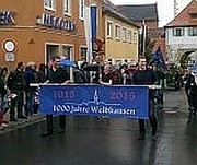 Beim Umzug am 1. Mai nahmen sehr viele Welbhäuser teil; alle Dorfbewohner trugen stolz ihr 1000-Jahre-T-Shirt zur Schau und trotzten dem regnerischen Wetter. Unterteilt waren die Teilnehmer in verschiedene Gruppen: Die Jugend präsentierte das Banner mit dem Logo, die Landjugend trug Schilder und Fahnen, der Schützenverein beeindruckte mit Schützenuniformen, wobei die Damen mit ihrer Schützentracht hervorstachen. Mit Fahrzeug – einem Traktor – trat der Obst- und Gartenbauverein auf. Wunderhübsche Blumenarrangements zierten den Anhänger. Im Anschluss daran winkten die Feuerwehrleute den Zuschauern in Uffenheim. Historische Handpumpe, Uniformen und Traktor mit altem Spritzenanhänger wurden zur Schau gestellt. Die riesige „1000-Jahr-Truppe“ bildete den Abschluss der Welbhäuser Abteilung. Eifrig wurden Flyer zum im Juli stattfindenden 1000-Jahre-Fest verteilt. Bei diesem Umzug war die Teilnehmerzahl der Welbhäuser – eingeteilt in verschiedene Gruppen – wohl unschlagbar. Nicht nur die Zuschauer („Jetzt kann man Welbhausen ja ausrauben. Das Dorf muss ja leer sein, wenn hier alle dabei sind.“), sondern auch wir selbst waren überrascht und erfreut über die Länge des Zugs. So war die erste Aktion anlässlich unseres Jubiläums gelungen, es stand aber eine ungleich größere bevor: die Tausendjahrfeier am ersten Juliwochenende.